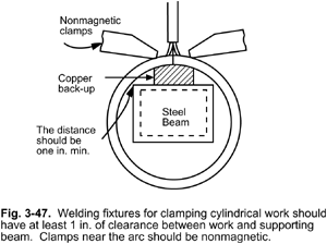- Fixtures for welding the longitudinal seam of cylinders (see Figure 3-47) should be designed for a minimum of 1-inch clearance between the supporting beam