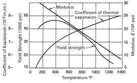 Fig. 3-1 Changes in the properties of steel with increases in temperature complicate analysis of what happens during the welding cycle - and, thus, understanding of the factors contributing to weldment distortion.