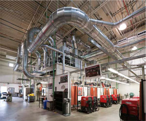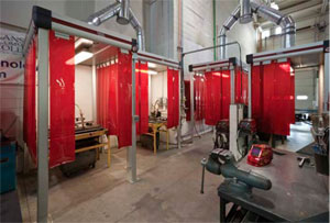 The school deliberately designed its lab to incorporate a comprehensive air filtration plan, which includes three separate Lincoln Electric weld fume control systems. Each system utilizes a combination of modular hoods and extraction arms to remove fume directly from the source. The fume is then transported through ducts to a Statiflex® 6000 central filtration unit.