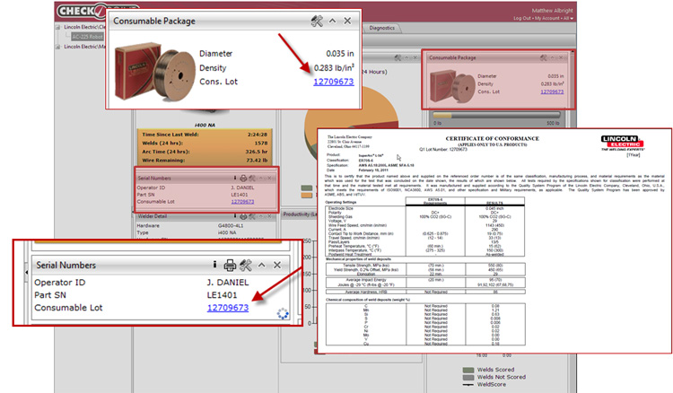 The latest solutions offer traceability reporting, a key consideration for those fabricators who must, in turn, hold records for customer review on welding consumable certifications, maintain records for quality initiatives and other similar activities. Up to three user-determined fields can be tracked – operator ID, part ID and consumable – in short, who did the weld, on what part, and with which welding wire consumable spool or package – All of this can be viewed easily on mobile devices or downloaded for record retention.