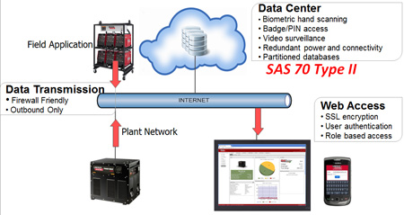 The concept of production monitoring in the cloud is no different than web-based email, such as Gmail®, or account services websites from financial institutions, retailers and other websites. Just as you log in into your bank account, PayPal® or credit card account on a PC or a mobile device, you can use your secure user name and password to access pertinent data at any time of the day.