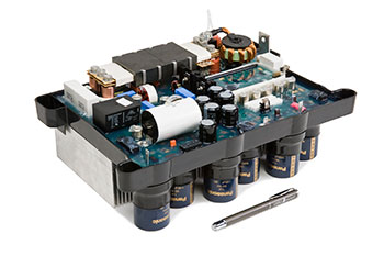 With inverter technology, the incoming 60 Hz power is first rectified to DC and then is fed into the power supply’s inverter section where it is switched on and off by solid-state switches at frequencies as high as 120,000 Hz. This pulsed, high-voltage, high-frequency DC then is fed to the main power transformer, where it is transformed into the low-voltage DC that’s suitable for welding.