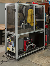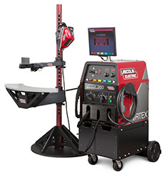 In addition, the program uses a Lincoln Electric Robotic Welding Education Cell. This compact and fully functional welding robot can be used to train students on the set up, operation and troubleshooting of robotic welding and programing. The unit is so compact, it can be wheeled through a standard doorway to a classroom for personal or small group programming training or to the lab for hands-on welding training.