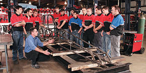 With six campuses now in California, Massachusetts, Pennsylvania and Wyoming, students follow military protocol as they study everything from the design phase and frame fabrication to interiors and finish paint. The facilities are state of the art, each equipped with lecture halls and about $7 million in tools, including more than 100 welders, plasma cutting and fume exhaust systems from The Lincoln Electric Company.