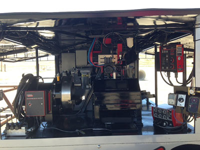“Sometimes we’ll have to pull a hardbander to a rig location that’s 40 miles off of the beaten path on a logging road,” he says. “We’ve found that pulling a trailer unit into such a location is easier than hauling a skid-mounted unit. Also, if the rig slides or pipe is moved, we can relocate a trailer-mounted hardbander easily.”