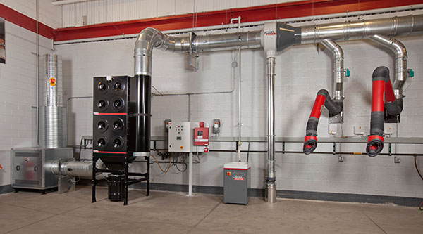 Three key elements – fuel, oxygen and heat – are necessary for a fire to start and to keep it burning. Fuel (any combustible substance) can accumulate as a mixture of particulates those that may be in welding fume and oil in the ductwork or in the filter itself. A source of oxygen, which is necessary to support a fire, enters the system through the extraction power of the fan. The heat component comes from such potential sources of ignition as sparks, smoldering or burning particles (which can include cigarette butts) or spontaneous combustion.