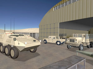 A desert base is one of several virtual environments available with the VRTEX® 360
