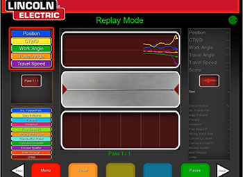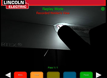 The video replay function includes the ability to review the current weld after it has been graded. The video replay allows the instructor and student to review what the student was looking at along with the movements and actions during the weld. The Replay Mode can be a very valuable tool to both the user and instructor. The replay with both audio and video replay allows instant feedback of what just happened. It can be used in conjunction with the Demo Mode to help the user understand how the weld is supposed to be done and compare it to what they actually did.