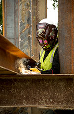 El equipo de construcción utiliza soldadores accionados por motor diesel, que incluyen fuentes de poder Vantage® de 300 amperios de Lincoln Electric, así como varios modelos Ranger® de Lincoln Electric de 250 amperios, electrodos Excalibur® AWS E7018 y cascos de soldadura con oscurecimiento automático VIKING ™.