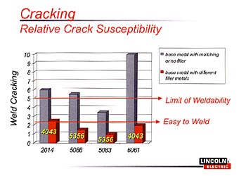 Para las soldaduras en ángulo, la resistencia depende de la composición de la aleación de relleno utilizada para soldar la junta. En aplicaciones estructurales, la selección del relleno de la serie 5XXX en lugar del 4XXX puede proporcionar el doble de resistencia.