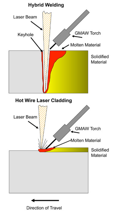 Que las empresas de soldadura tradicionales adopten una tecnología basada en láser no ha ocurrido de la noche a la mañana. La combinación de un láser con un proceso de arco para abordar algunas de las deficiencias de la tecnología es casi tan antigua como el propio procesamiento láser. Bill Steen publicó un artículo titulado "Procesamiento de materiales con láser aumentado por arco" en el Journal of Applied Physics ya en 1981. En la mayoría de los casos, la combinación del láser con un proceso de arco era para abordar el ajuste, la química o la limitación de potencia. del láser. Y aunque la mayor parte del procesamiento híbrido se ha centrado en la soldadura por arco metálico con gas (GMAW), ha habido otros que han investigado la combinación de láseres con soldadura por arco con gas tungsteno (GTAW) (Diebold y Albright, Welding Journal, 1984) y plasma (Walduck y Biffin, Investigación de soldadura a bordo, 1995).