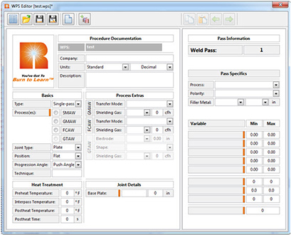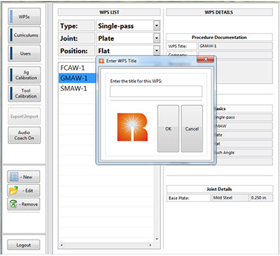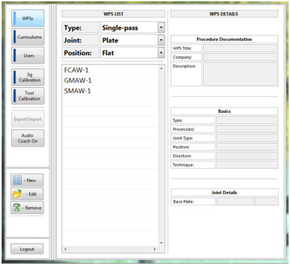 Press the “WPSs” button on the screen to bring up a list of all WPS documents currently saved on the system. There are three pre-loaded curricula that contain various WPS sets: SMAW-1, GMAW-1 and FCAW-1.