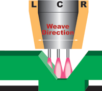 Lighting is critical in 2D Vision Systems. Any ambient light including sunlight, overhead lights, or other welding arcs within close proximity can distort the image and decrease the accuracy of the pattern match. This can make 2D Vision Systems cumbersome to use on shiny material such as aluminum. Also, the harsh environment created by a welding arc can hinder the camera’s accuracy. If the camera is torch mounted, the lens must be protected from heat and spatter from the weld arc. 3D Vision Systems employ the same technology as 2D Vision Systems with the addition of a laser. While 2D Vision Systems detect part movement in the X and Y directions and part rotation, 3D Vision Systems add detection for changes in height, pitch, and yaw.